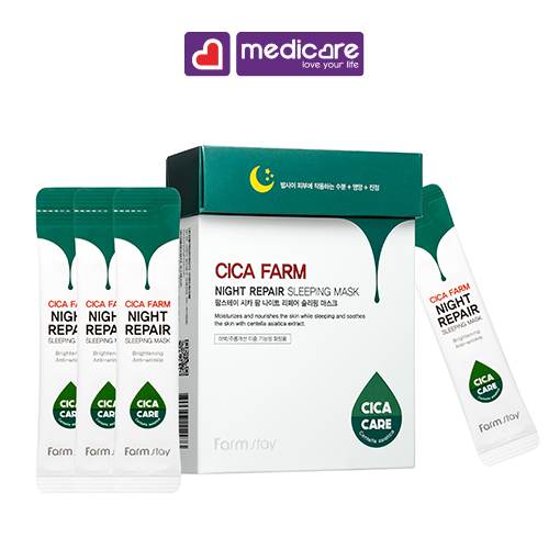 ✨0133438 Mặt Nạ Ngủ FARMSTAY Cica Farm Night Repair Sleeping Mask Phục Hồi Da Gói 10g