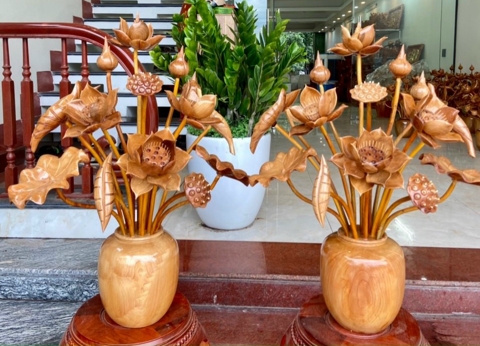 Hoa Sen gỗ Ngọc Am để mộc tỏa mùi thơm, bình gỗ Mít ta nguyên khối