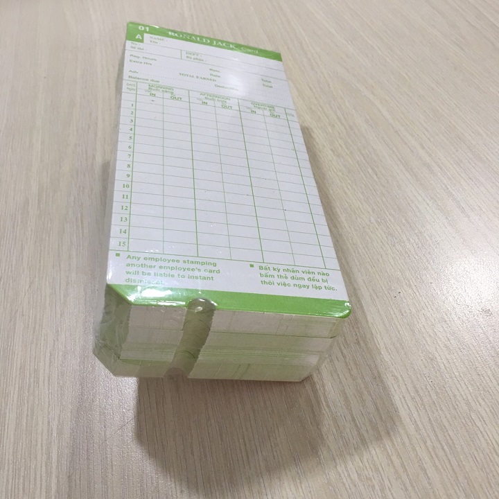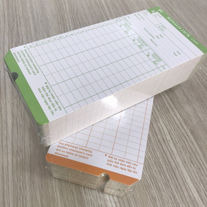 1/Thẻ giấy chấm công 3 ca hiệu Ronald Jack, sử dụng được cho nhiều loại máy chấm công thẻ giấy hiện nay chất liệu : giấy bìa cứng cáp, in màu hai mặt 2/Kệ