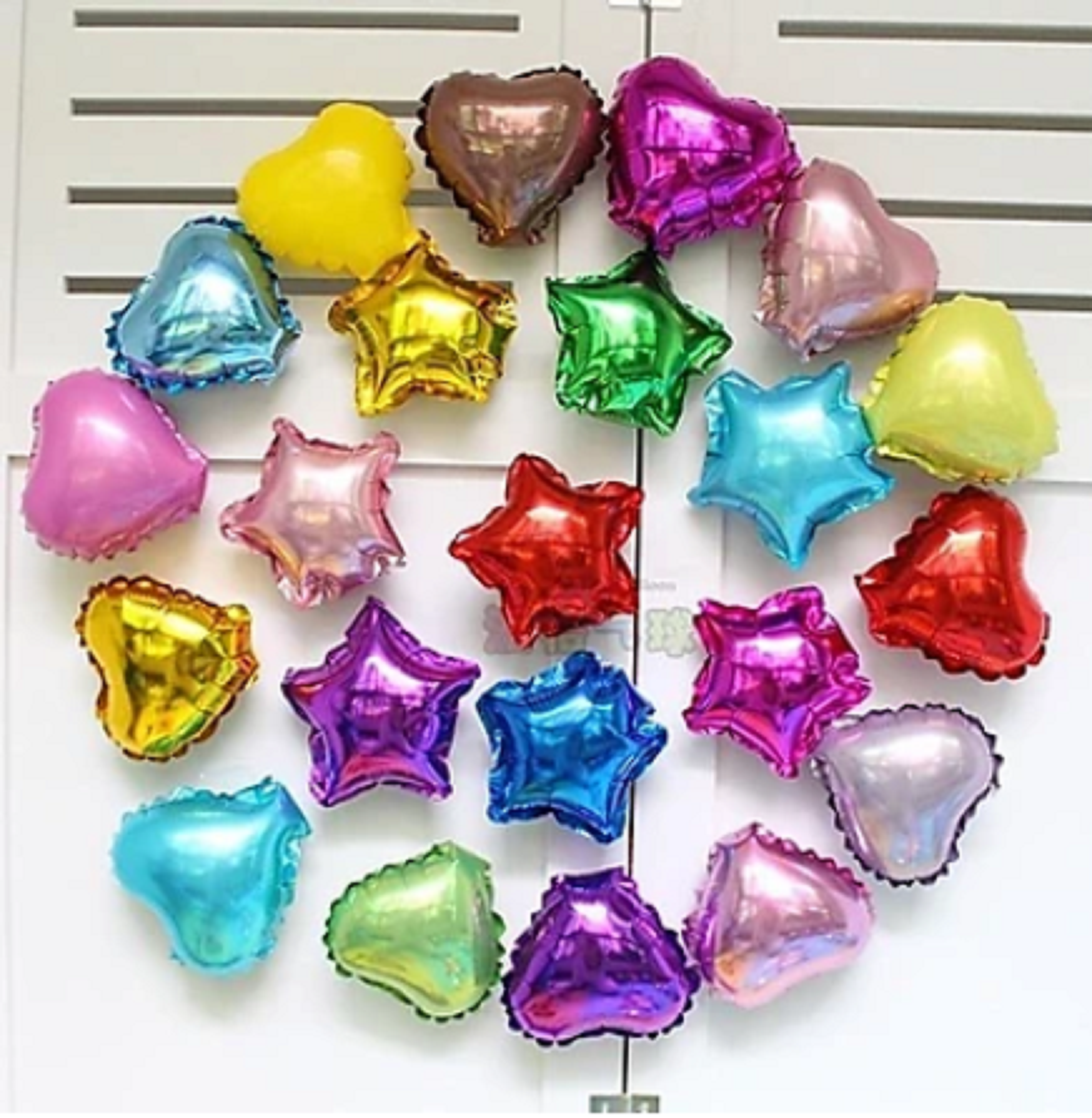 Bóng bóng tráng nhôm hình trái tim, hình sao dùng mix vào set bóng chữ, có thể bơm khí helium để bay lẻ hay theo chùm, hoặc đơn giản là trang trí background