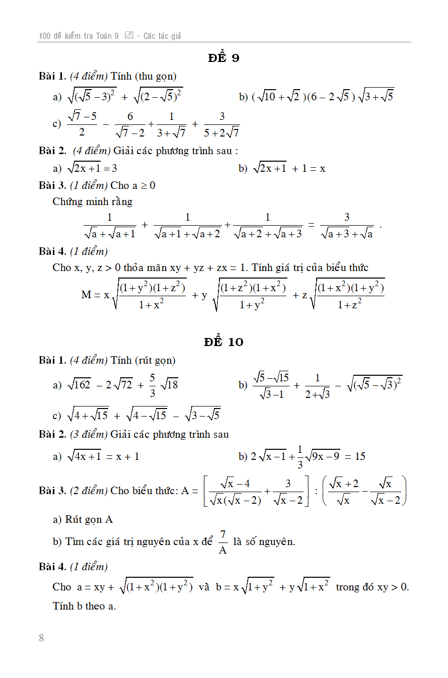 Mua tại Tiktok100 Đề Kiểm Tra Toán 9