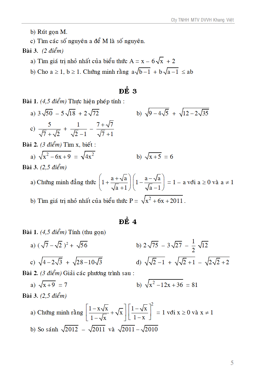 [100 Đề thi hay] Đề kiểm tra Học kì 1 môn Toán lớp 9, tham khảo, mr. Hiệp Lê Văn Hiệp