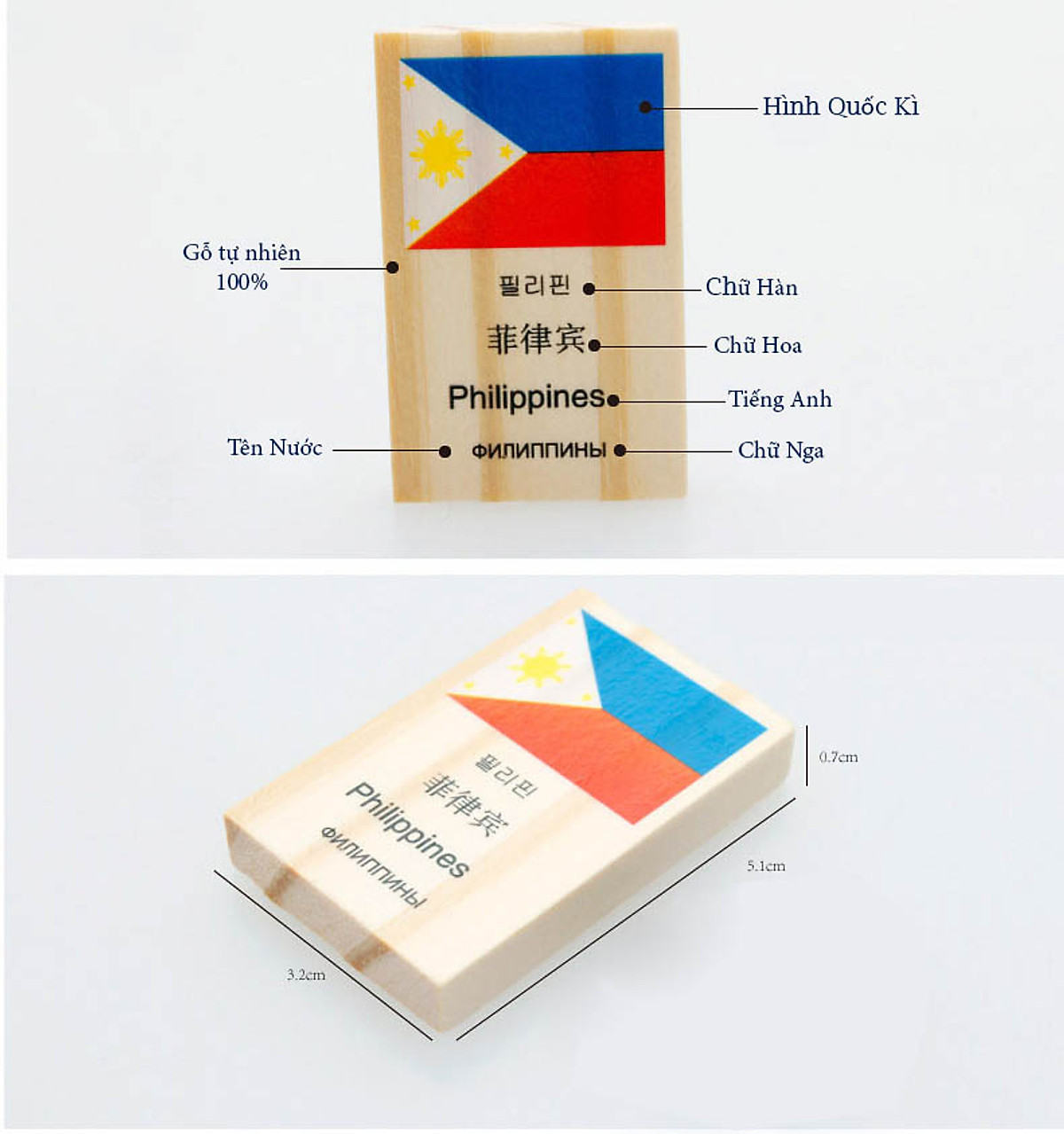 Giới Thiệu Sản phẩm đồ chơi cho bé bằng gỗ bao gồm 100 quân Domino với 99 lá cờ là tên của 99 quốc gia trên thế giới và 1 lá cờ Liên Hợp Quốc.