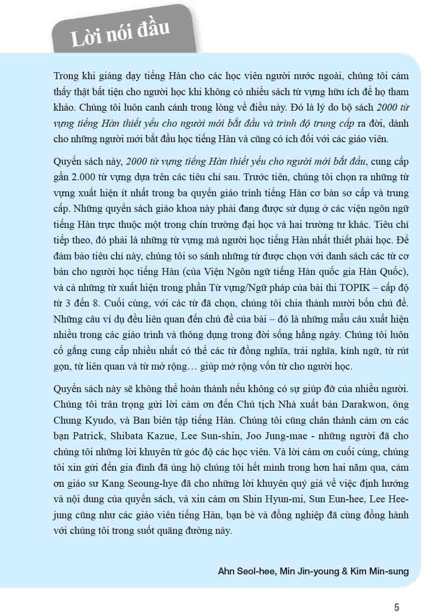 - Sách “2.000 Từ vựng tiếng Hàn thiết yếu dành cho người mới bắt đầu” được thiết kế cho người học tiếng Hàn, các giáo viên giảng dạy tiếng Hàn như ngôn ngữ thứ hai.