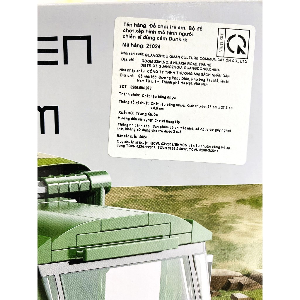 Thông tin sản phẩm: 21024 Bộ đồ chơi lắp ráp mô hình người chiến sĩ dũng cảm Dunkirk - QMAN - Kích thước: 37x27.5x6.5cm - Chất liệu: Nhựa ABS - Thương
