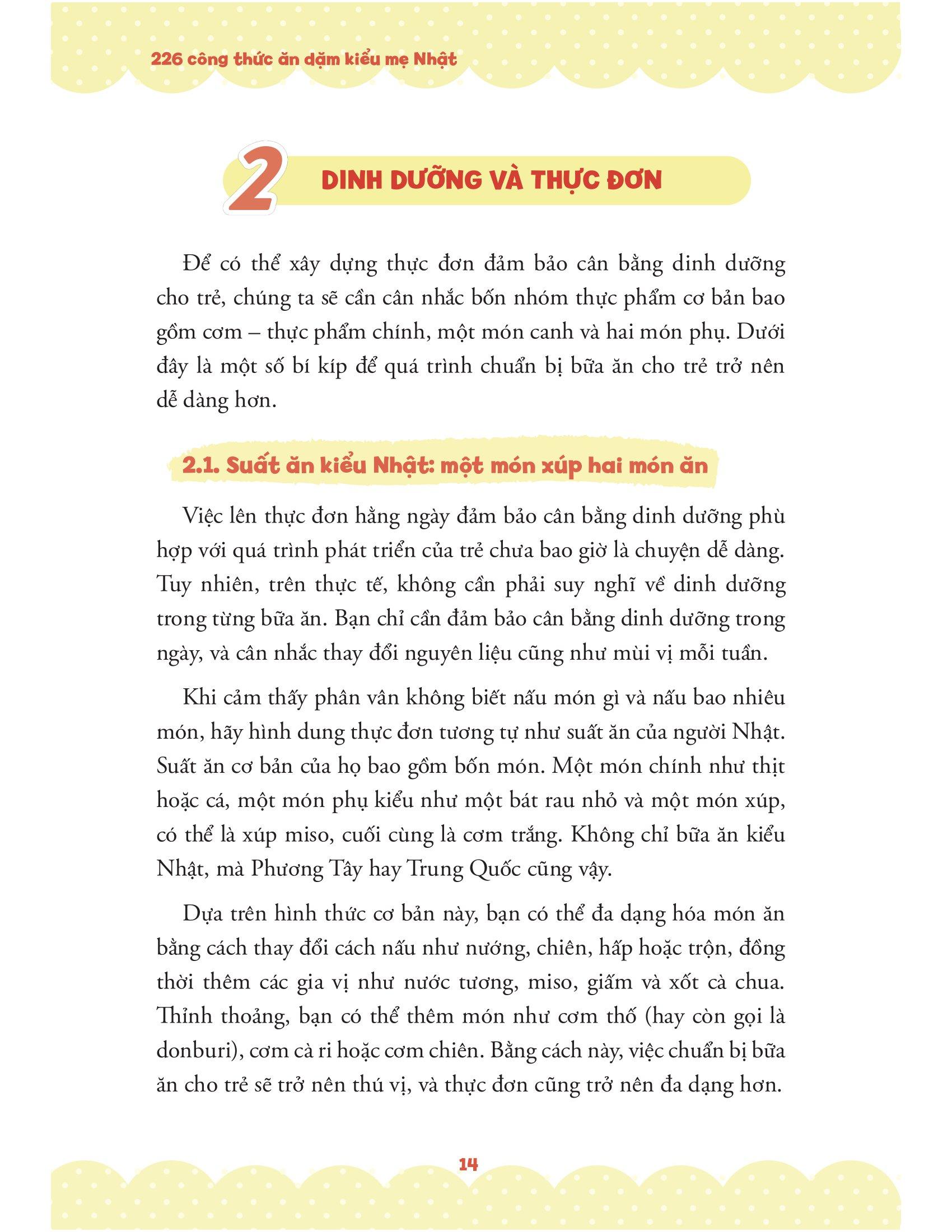 226 Công Thức Ăn Dặm Kiểu Mẹ Nhật Top 10 sách thực đơn cho trẻ bán chạy nhất tại Nhật Nếu có con nhỏ, mỗi ngày của bạn đều sẽ là một cuộc chiến. Trong