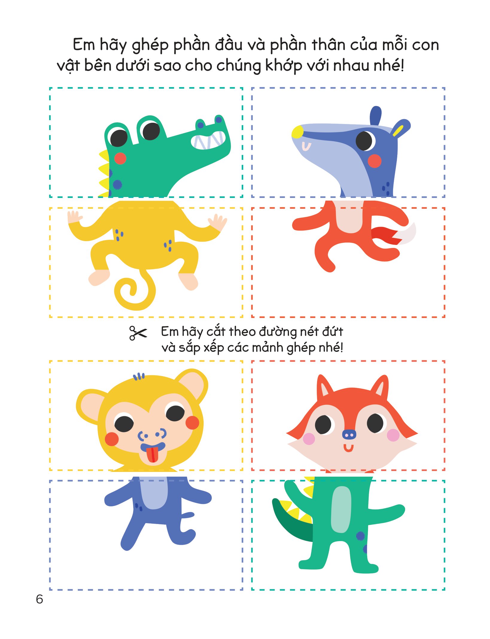 Đồng thời, các hoạt động trong sách cũng kích thích trí não của em, giúp em phát triển nhận thức thị giác, kỹ năng vận động tinh và sự phối hợp tay-mắt đấy.