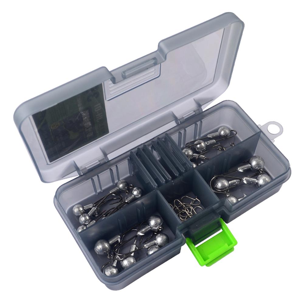 Features: High carbon steel jig, sharp hook for better penetration, solid and durable. Rigging with most soft worm and grub lures, keep soft lure in right position. Weighted rounded head designed for a fast drop