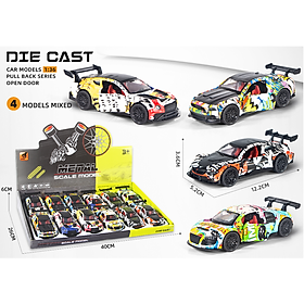 - 3611C-2 Mô hình xe ô tô kim loại pull-back tỉ lệ 1:36 - bộ 12 chiếc (KT 12x5.3x4.9cm)