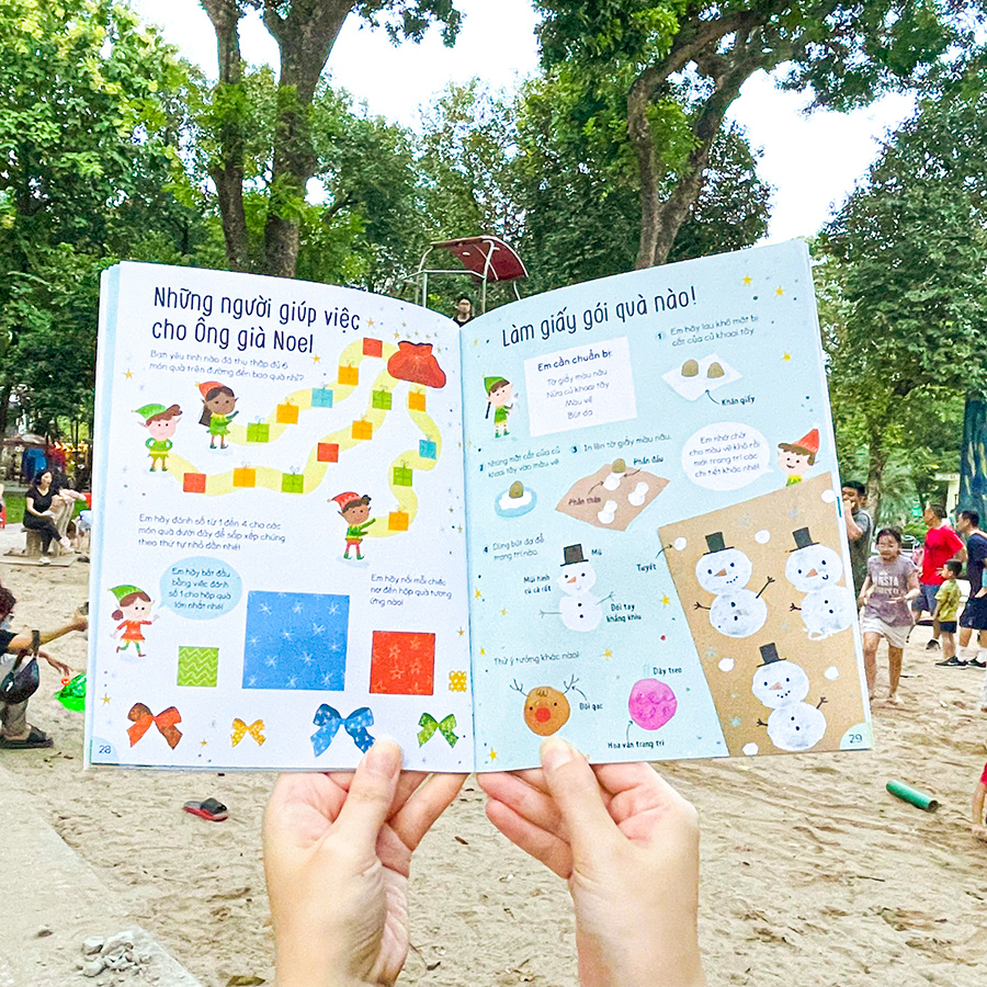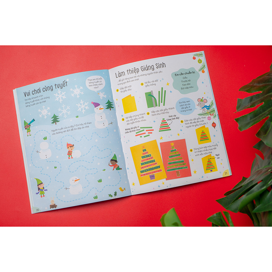 Ngoài ra còn rất nhiều các hoạt động khác như: Giải ô chữ, nối số, vẽ tranh, giải mã mê cung… đang chờ bạn nhỏ khám phá trong cuốn sách này đấy! Hãy cùng thỏa sức sáng tạo để làm nên một mùa Giáng Sinh thật diệu kỳ nhé!