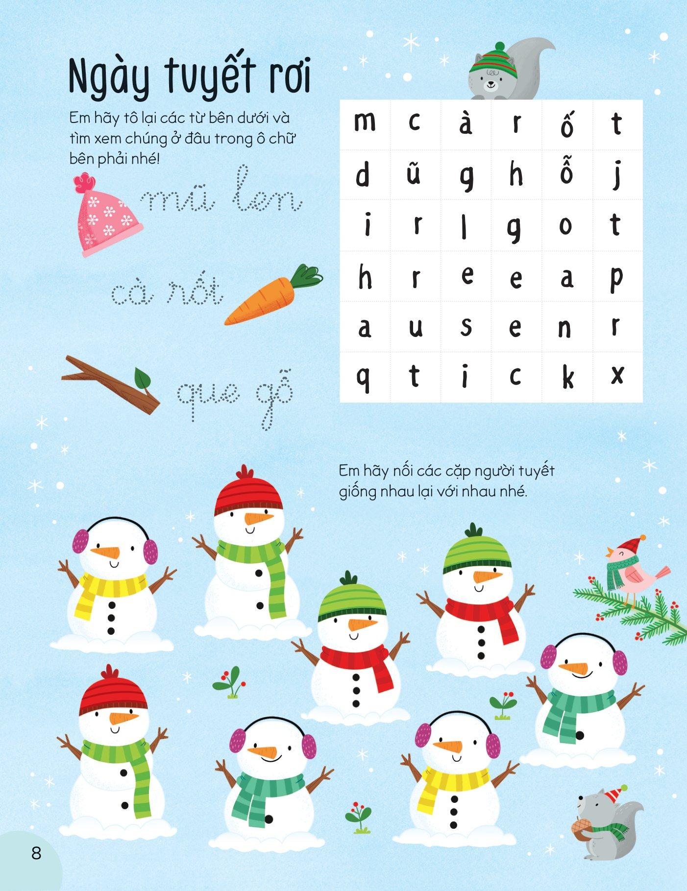 40++ Hoạt Động Sáng Tạo Cho Giáng Sinh Diệu Kỳ Với cuốn sách “40++ Hoạt động sáng tạo cho Giáng Sinh diệu kỳ”, trẻ sẽ được tham gia những trò chơi Giáng Sinh cực thú vị, phù hợp với không khí lễ hội đặc biệt này, ví dụ như: Làm một chiếc Cây Giáng Sinh tí hon Làm người tuyết từ chiếc tất Làm thiệp Giáng Sinh Cách vẽ người tuyết Làm mặt nạ ông già Noel Làm giấy gói quà Cắt những bông tuyết giấy Cuốn sách bao gồm hơn 40 hoạt động sáng tạo độc đáo, có hướng dẫn chi tiết, trực quan, giúp các em vừa phát triển trí tưởng tượng và óc sáng tạo, vừa phát triển năng lực thị giác cũng như khả năng tập trung, kỹ năng vận động và sự phối hợp tay-mắt… giúp các bạn nhỏ rèn luyện IQ, EQ rất hiệu quả. Ngoài ra còn rất nhiều các hoạt động khác như: Giải ô chữ, nối số, vẽ tranh, giải mã mê cung… đang chờ bạn nhỏ khám phá trong cuốn sách này đấy! Hãy cùng thỏa sức sáng tạo để làm nên một mùa Giáng Sinh thật diệu kỳ nhé!