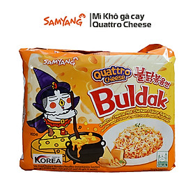 Mì khô gà cay phô mai Quattro cheese là mì mới của Samyang, cũng là vị cay của sốt Buldak kết hợp với vị phô mai. Tuy nhiên, đợt này vị phô mai đặc biệt