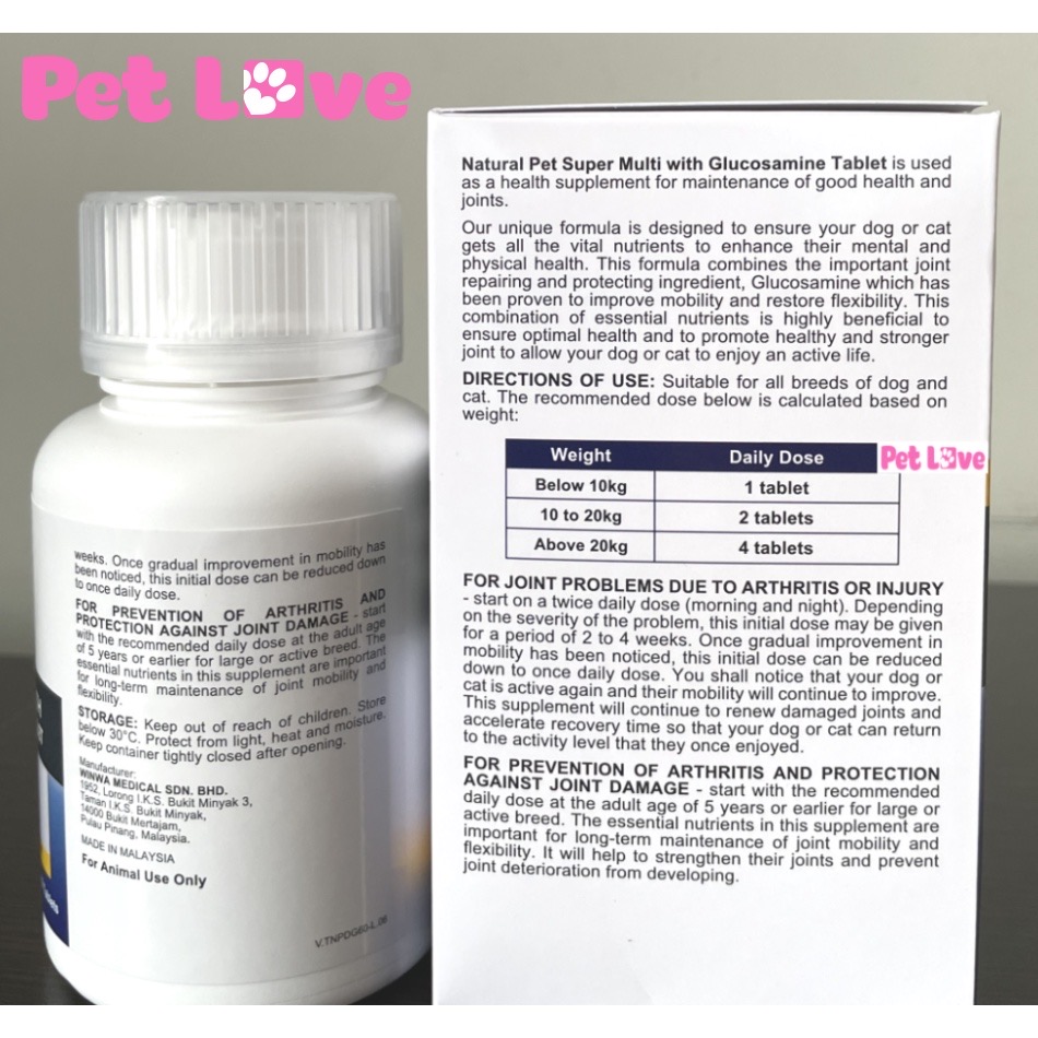 * Bổ sung vitamin tổng hợp, acid amin, khoáng chất thiết yếu và các vi sinh vật có lợi cho đường ruột chó mèo. * Hỗ trợ các bệnh về xương khớp (khớp bị đau,