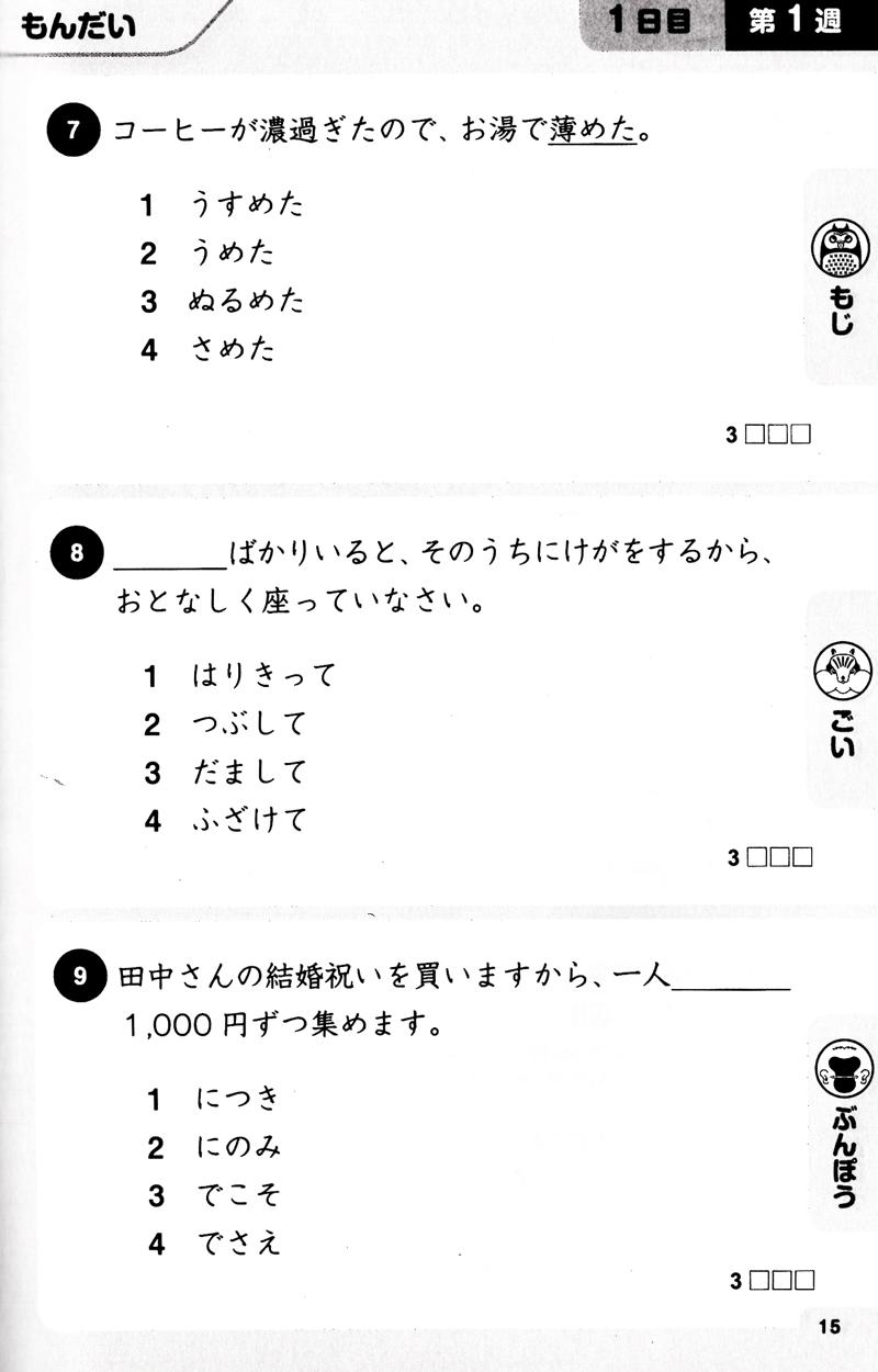 Điểm đặc biệt là sách được thiết kế theo ngày, mỗi ngày người học có thể ôn cả 3 kỹ năng : Từ vựng, Ngữ pháp, Hán tự chỉ với 15 phút.