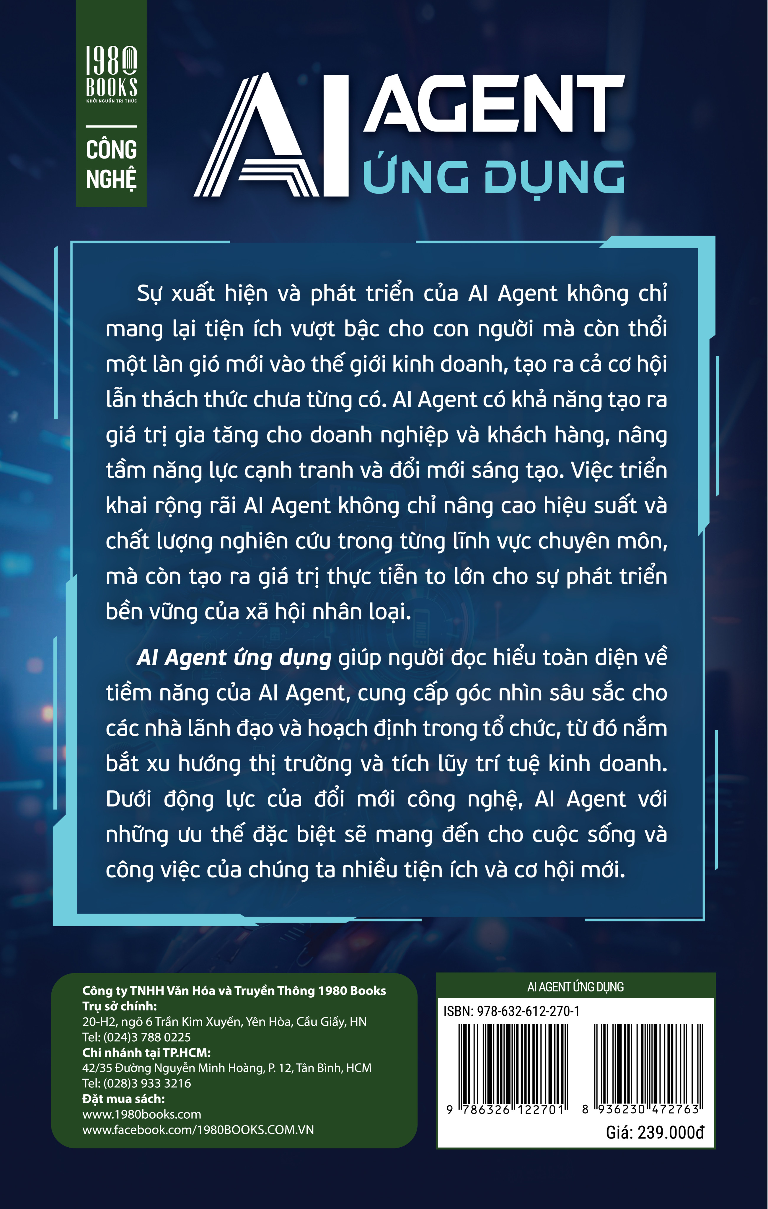 AI Agent đang trở thành xu hướng công nghệ chủ đạo của năm 2025 với khả năng hỗ trợ, thay thế con người trong nhiều công việc phức tạp. Khác với những công nghệ AI truyền thống chỉ tuân theo các kịch bản cố định được cài đặt sẵn, AI Agent mang đến bước tiến vượt bậc nhờ khả năng lý luận linh hoạt, tự học hỏi và ra quyết định độc lập, giảm thiểu sự giám sát liên tục từ con người. Cuốn sách “AI Agent ứng dụng” là một cuốn sách chuyên sâu, toàn diện và giàu tính thực tiễn về cách con người cộng tác cùng AI để tạo ra những giá trị mới, hay cách AI Agent đang định hình tương lai nền kinh tế số.