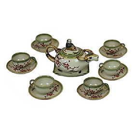 - BỘ SẢN PHẨM GỒM: 1 ẤM TRÀ, 6 CHÉN, 6 ĐĨA KÊ, 1 HỘP CHÈ, 1 GẠT TÀN, 1 ỐNG TĂM - DUNG TÍCH ẤM: 660ml; ĐƯỜNG KÍNH MIỆNG CHÉN: 5.7cm - CHÉN CAO: