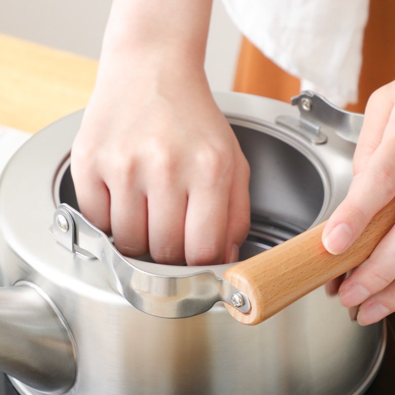 Ấm đun nước dành cho bếp từ Quick-one - Nội địa Nhật Bản: * Chất liệu: Thân bằng Inox 18-8 không gỉ, tấm đế/ đáy bằng inox 18-0 không gỉ, tay xách & núm cầm bằng