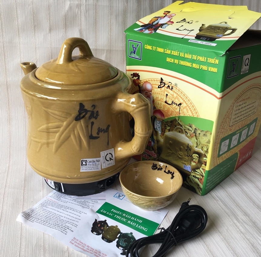 Ấm Siêu Sắc Thuốc Điện Tự Động Gốm Bát Tràng Bảo Long Phú Vinh Cao Cấp PV-386H (3,2 lít) - Màu Ngẫu Nhiên - Hàng Chính Hãng Đặc Điểm Nổi Bật Tự động ngắt khi thuốc còn 1 chén, chuyển qua chế độ hâm Nấu thuốc tự động với 2 chế độ nấu nhanh và chậm Tự động điều chỉnh nhiệt độ và thời gian Độ sôi và độ tràn nước đạt tiêu chuẩn Lựu chọn nhiệt độ, thời gian nhanh và thuận lợi Có dung tích lớn. Kiểu dáng mẫu mã đa dạng Gốm Bát Tràng nung nhiệt độ cao 1300 độ C an toàn Công suất 450W, Dung tích 3.2L Màu sắc và hoa văn thay đổi tùy theo từng đợt nhập hàng Thương Hiệu: Việt Nam Sản Xuất Tại: Việt Nam Ấm Siêu Sắc Thuốc Điện Tự Động Gốm Bát Tràng Bảo Long Phú Vinh Cao Cấp PV-386H (3,2 lít) - Màu Ngẫu Nhiên - Hàng Chính Hãng tự động sắc thuốc bắc, thuốc nam, các loại lá, rế cây để uống, điều trị bênh. Sản phẩm được cấu tạo gốm sứ Bát Tràng giữ công dụng của thuốc một cách tốt nhất, không nhiễm chì, các chất gây độc hại khác, Cho ra mẻ thuốc với chất lượng tốt nhất. Với dung tích chứa lớn 3,2 lít đủ cho bạn sắc được những thang thuốc lớn hoặc các thang thuốc nhỏ vẫn được. Ấm Siêu Sắc Thuốc Điện Tự Động Gốm Bát Tràng Bảo Long Phú Vinh Cao Cấp PV-386H (3,2 lít) - Màu Ngẫu Nhiên - Hàng Chính Hãng Cấu tạo gốm sứ Bát Tràng giữ công dụng của thuốc một cách tốt nhất, không nhiễm chì, các chất gây độc hại khác   ƯU ĐIỂM: Ấm Siêu Sắc Thuốc Điện Tự Động Gốm Bát Tràng Bảo Long Phú Vinh Cao Cấp PV-386H (3,2 lít)   Cấu tạo từ Gốm Sứ Bát Tràng an toàn không độc hại