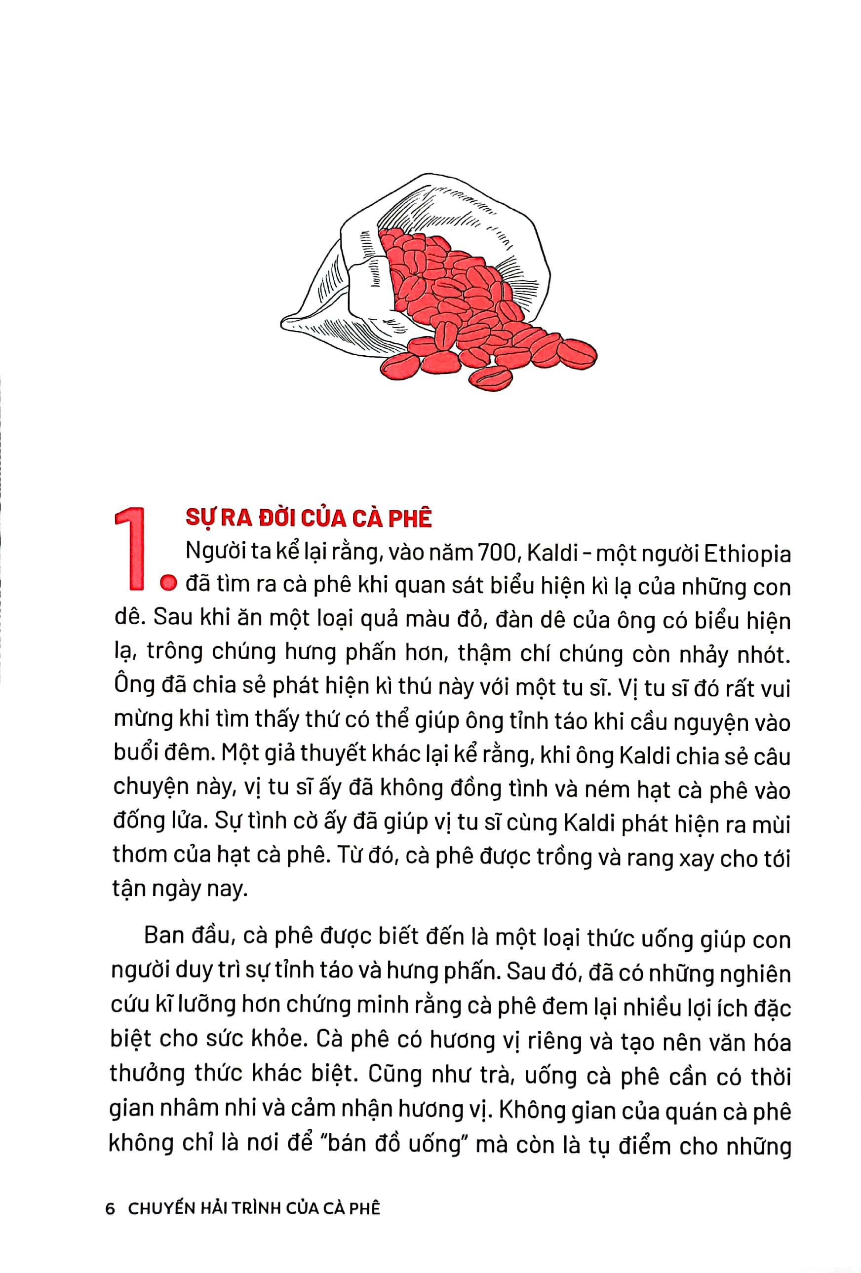Cuốn sách này sẽ đưa bạn bước vào hành trình hương vị đầy hấp dẫn của những tách cà phê thơm ngon. Cà phê đã ra đời như thế nào, văn hóa thưởng thức cà phê trên thế giới và ở Việt Nam có gì thú vị, những trào lưu cà phê nào đang thịnh hành hoặc đã trở thành huyền thoạ cùng rất nhiều những câu chuyện mới mẻ khác xoay quanh tách cà phê giản đơn mà chúng ta vẫn thưởng thức hằng ngày.