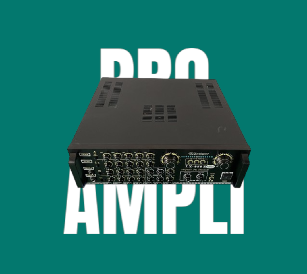 Mua tại TiktokAmply Karaoke Bluetooth Công Suất Lớn 1200W Zenbos LX-858Z 20 Sò THÔNG SỐ KỸ THUẬT: - speaker A-B, EQ Parametric EQ - 2 đường micro - Led cao cấp - Mạch bảo vệ loa - Cổng ra sub - Chức năng kết nối bluetooth với các thiết bị không dây - Số kênh: 2 - Công Suất: 600W/kênh - Công Suất Thực: 1200W - Số Domino: 20 - Trở Kháng: 8ohm - Kích Thước: 42 x 40 x 13 cm - Điện Áp Sử Dụng: 220V/50Hz - Trọng Lượng: 15kg ĐẶC ĐIỂM NỔI BẬT: