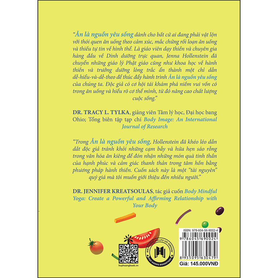 Ăn là nguồn yêu sống dành cho bất cứ ai đang phải vật lộn với thói quen ăn uống theo cảm xúc, mắc chứng rối loạn ăn uống và thiếu tự tin về hình thể. Là giáo viên dạy thiền và chuyên gia hàng đầu về Dinh dưỡng trực quan, Jenna Hollenstein đã chuyển những giáo lý Phật giáo cũng như khoa học về hành thiền và trưởng dưỡng lòng trắc ẩn thành một chỉ dẫn dễ-hiểu-và-dễ-theo để thúc đẩy hành trình Ăn là nguồn yêu sống của chúng ta.