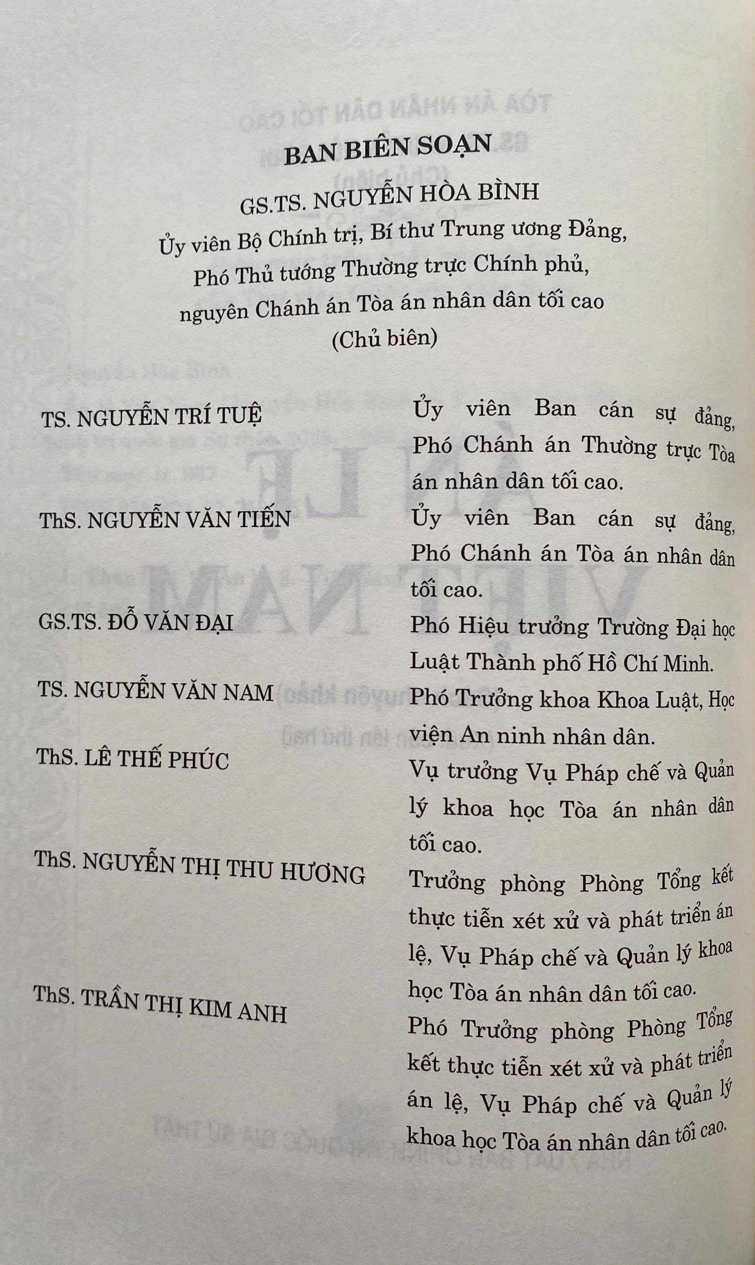 Án Lệ Việt Nam (Sách chuyên khảo, xuất bản lần thứ 2) Tác giả: Tòa Án Nhân Dân Tối Cao - GS.TS. Nguyễn Hòa Bình (Chủ biên) Nhà xuất bản: Chính trị quốc gia Sự