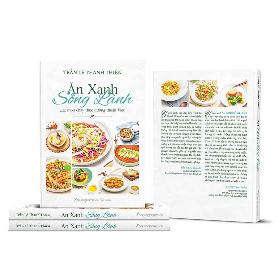 Từ hạt tiêu xanh Phú Quốc the cay, củ khoai mỡ Long An dẻo ngon, trái thanh long Bình Thuận đỏ thắm, cơm dừa non Bến Tre béo ngậy, tép tỏi đen Lý Sơn giàu dược tính, hạt muối Bạc Liêu đậm đà, lát khoai deo Quảng Bình gợi nhớ, vị tương bần Hưng Yên dậy hương… tác giả Trần Lê Thanh Thiện đã khéo léo kết hợp hài hòa hương – sắc – vị trong từng món ăn để tạo nên bức tranh ẩm thực chay hài hòa và tịnh lạc trong Ăn Xanh Sống Lành – 33 món chay thực dưỡng thuần Việt.