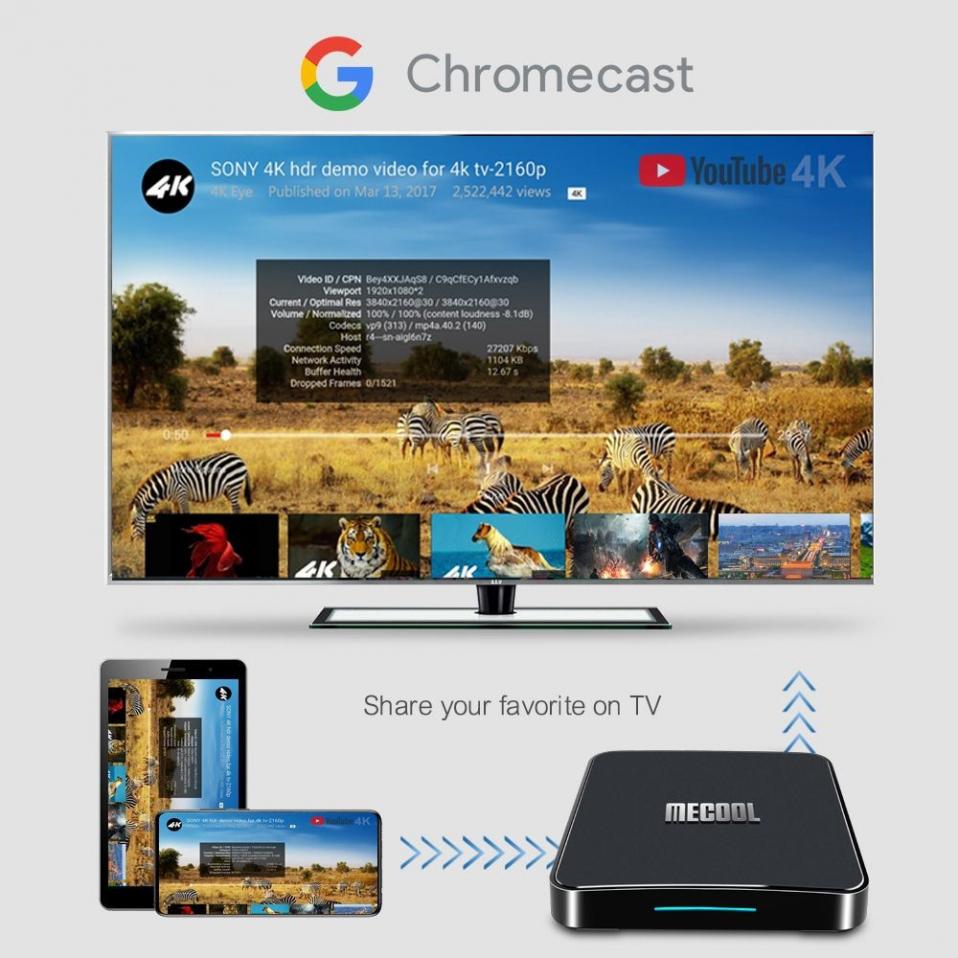 MECOOL km1 là hộp truyền hình được chứng nhận bản quyền bởi Google và được tích hợp sẵn một số tính năng vượt trội. Đặc biệt nhất là khả năng nhận diện giọng nói nhanh nhạy, tìm kiếm nội dung dễ dàng, dù ở khoảng cách xa, dựa trên điều khiển remote kèm theo Box. Lưu ý hỗ trợ cả tiếng việt