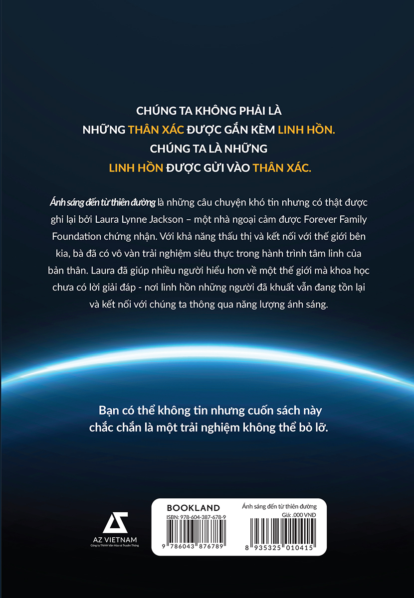Ánh sáng đến từ thiên đường là những câu chuyện khó tin nhưng có thật được ghi lại bởi Laura Lynne Jackson – một nhà ngoại cảm được Forever Family Foundation chứng nhận. Với khả năng thấu thị và kết nối với thế giới bên kia, bà đã có vô vàn trải nghiệm siêu thực trong hành trình tâm linh của bản thân. Laura đã giúp nhiều người hiểu hơn về một thế giới mà khoa học chưa có lời giải đáp - nơi linh hồn những người đã khuất vẫn đang tồn tại và kết nối với chúng ta thông qua năng lượng ánh sáng.