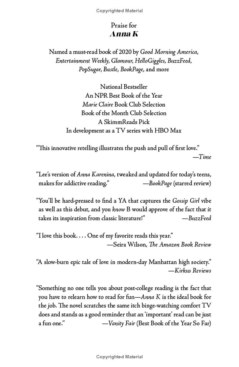 "A fresh and wickedly smart take on a classic story. Anna is even more scandalously fun now, in the age of stilettos and social media, than she was in 19th century Russia. I couldn't put this one down." Katharine McGee, New York Times bestselling author of American Royals