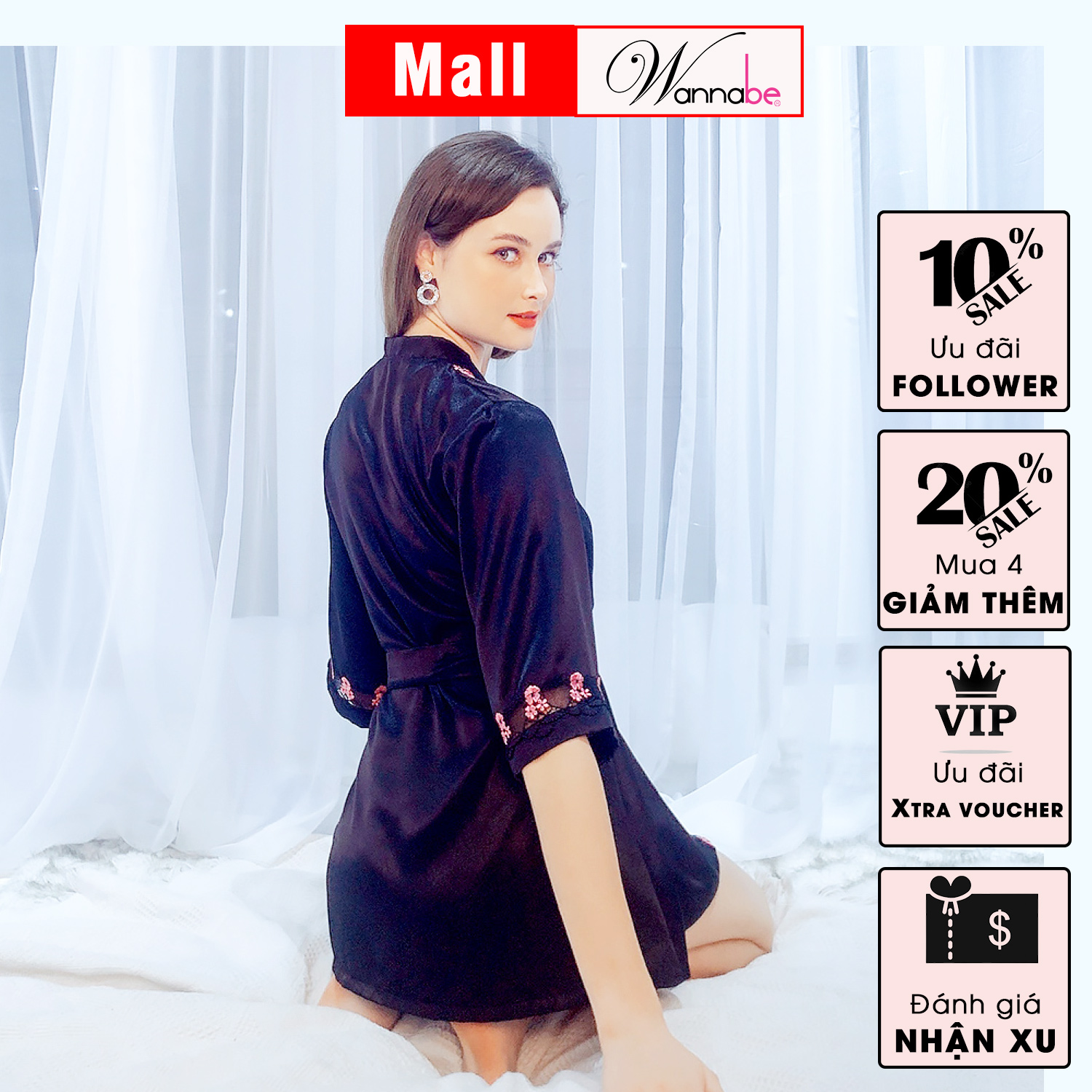 Áo choàng ngủ WANNABE KI625 áo khoát ren hoa trong suốt xuyên thấu khoe body chuẩn đẹp của bạn gái Áo choàng ngủ Wannabe được thiết theo kiểu dáng hiện đại trên chất liệu ren
