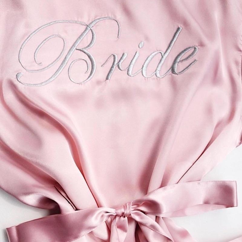 Với thiết kế ngọt ngào, một bộ choàng không thể thiếu trong bộ ảnh của cô dâu với chiếc đai thắt ngang tạo điểm nhấn của bộ đồ ngủ cùng với chữ được thêu cẩn thận ở sau áo.