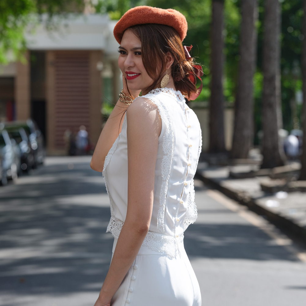 Thiết kế áo trễ vai croptop thắt nơ vai phối chung với quần đồng bộ cotton thêu trắng có thể kết hợp với nhiều phụ kiện khác nhau như sandal, giày cao gót, túi xách,... tạo nên phong cách thời trang đa dạng, phù hợp cho nhiều hoàn cảnh khác nhau. Chiếc áo trễ vai croptop thắt nơ vai phối chung với quần đồng bộ cotton thêu trắng là biểu tượng của sự thanh lịch, nhẹ nhàng và đầy nữ tính. Thiết kế này tôn vinh vẻ đẹp tự nhiên của người phụ nữ, giúp bạn tự tin tỏa sáng trong mọi hoàn cảnh.   Kiểu dáng áo ngắn ngang lưng quần Trễ vai, nhấn dây cột vai Lai bo Tay dài qua khuỷ tay Cài bằng hàng nút phía trước   Cotton thêu máy Chất liệu chính: Cotton thêu   Cotton thêu máy được làm từ 100% sợi bông tự nhiên, mang đến cảm giác mềm mại, thoáng mát và an toàn cho da, đặc biệt phù hợp với khí hậu nóng ẩm của Việt Nam. Sợi cotton có độ bền cao, ít bị xù lông hay sờn phai sau nhiều lần giặt, giúp sản phẩm giữ được form dáng lâu dài. Khả năng thấm hút mồ hôi tốt giúp người mặc luôn cảm thấy thoải mái và dễ chịu trong mọi hoạt động.  Cotton thêu máy nổi tiếng với những họa tiết thêu tinh tế và đa dạng, từ hoa văn đơn giản đến những chi tiết cầu kỳ, phức tạp. Kỹ thuật thêu máy hiện đại giúp tạo ra những đường nét sắc sảo, sống động và đầy nghệ thuật. Cotton thêu máy đã trở thành chất liệu "quốc dân" tại Nhật Bản bởi những ưu điểm vượt trội về chất lượng, họa tiết và ứng dụng. Người Nhật yêu thích sự tinh tế, thanh lịch và sang trọng của cotton thêu máy, đồng thời trân trọng giá trị văn hóa truyền thống được thể hiện qua các họa tiết thêu. Chất liệu này thường được sử dụng trong các dịp lễ Tết, đám cưới, hay để làm quà tặng cho người thân, bạn bè.   Nghệ nhân: Yến, Xuân Cắt may thủ công tinh tế tại Hity Atelier, Nha Trang, Việt Nam Người mẫu Nguyễn Thu cao 170cm, vòng ngực 81cm vòng eo 63cm vòng mông 93cm - người mẫu đang mặc size S. Gọi Ms. Hity +84909028606 để Ms. Hity hỗ trợ bạn chọn size khi có phân vân nhé! Hity cung cấp dịch vụ đặt may theo số đo và thiết kế riêng theo từng yêu cầu của quý khách. Mời bạn thoải mái trò chuyện cùng Ms. Hity tại +84909028606 để Hity được phục vụ bạn nhé!   HƯỚNG DẪN SỬ DỤNG Để trang phục của bạn luôn sạch sẽ, mới đẹp và cùng góp phần bảo vệ môi trường giảm thải quần áo cũ, Ms. Hity khuyến khích bạn chăm sóc đúng cách quần áo của mình: Giặt máy ở nhiệt độ tối đa 30ºC, bọc trong túi giặt, vắt ở tốc độ thấp Không sử dụng nước tẩy / thuốc tẩy Phơi khô trên bề mặt phẳng Không sử dụng máy sấy Ủi ở nhiệt độ tối đa 150ºC (chế độ Cotton/ Linen) Ủi bằng bàn ủi hơi nước
