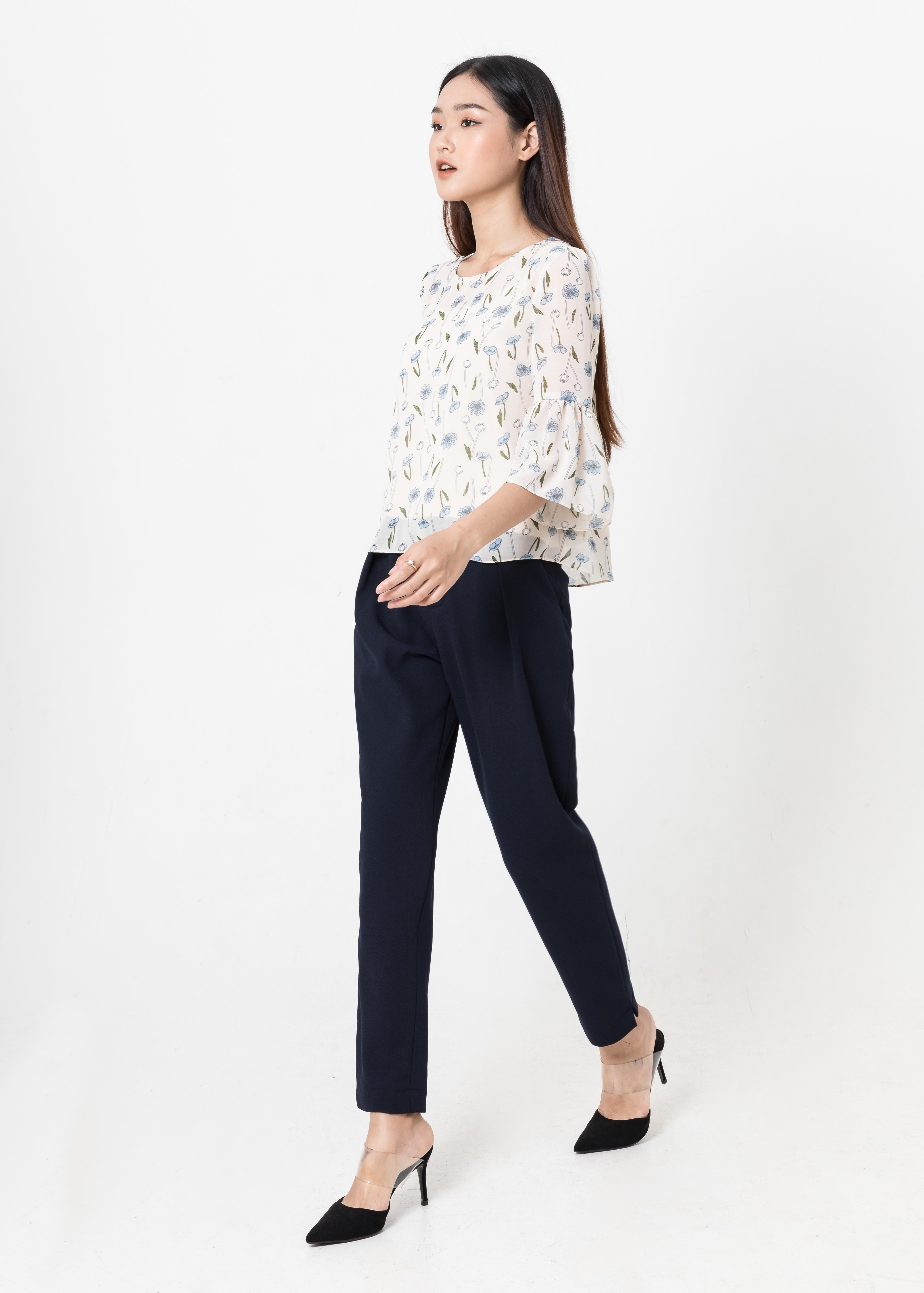 Áo croptop voan hoa với phần tay chuông trẻ trung, nữ tính. Áo có thể phối với nhiều loại trang phục theo nhiều phong cách từ quần, chân váy công sở đến quần sóc, chân