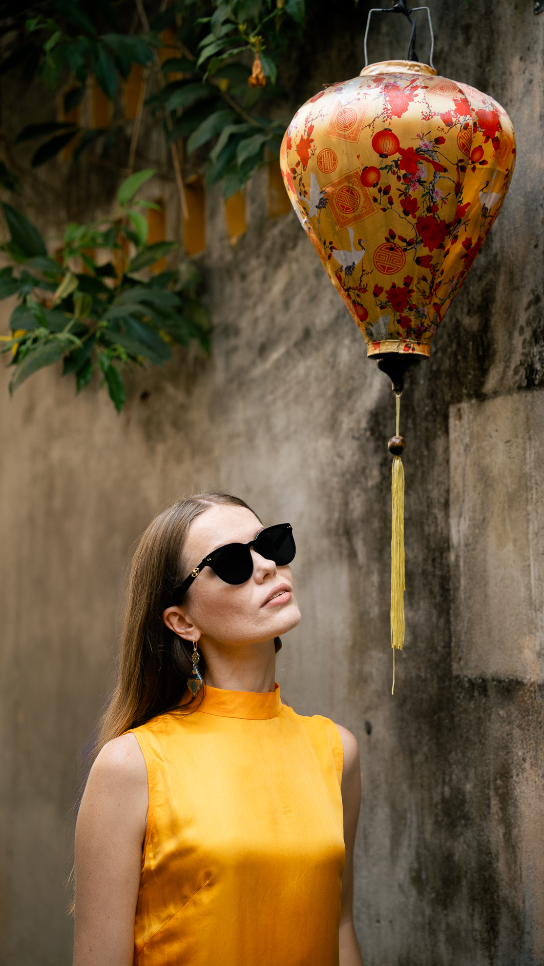 Mua tại TiktokTấm áo dài cách tân mang sắc màu óng ả nắng vàng lấy cảm hứng từ sắc hoa mùa thu nhiệt đới dã quỳ – loài hoa nổi bật với sắc vàng rực rỡ, phủ kín các sườn đồi cao nguyên. Với tinh thần luôn hướng về cảm xúc giao thoa giữa truyền thống và hiện đại, tấm áo dài Dã Quỳ được Hity thiết kế theo phong cách tối giản, không quá cầu kỳ nhưng vẫn giữ được vẻ đẹp tinh tế, tôn lên sự duyên dáng của người phụ nữ. Màu vàng nổi bật từ hoa dã quỳ tạo nên vẻ đẹp tự nhiên, tươi mới, mang đậm dấu ấn của mùa thu vùng nhiệt đới. Những chi tiết nhỏ như đường viền cổ áo, những đường cắt may khéo léo tạo nên nét chấm phá riêng, vừa giữ được vẻ cổ điển của áo dài truyền thống vừa thêm nét trẻ trung hiện đại. Chất liệu lụa tơ tằm được dệt từ làng lụa đũi Nam Cao, Thái Bình mềm mại, nhẹ nhàng và mát mẻ, giúp người mặc cảm nhận từng hơi thở đất trời thật nhẹ nhàng thanh cao. Áo dài kiểu dáng suông cách tân không tay Cổ cao 3.5cm Chích ben ngực và ben lưng Cài bằng dây khoá kéo sau lưng CHẤT LIỆU Lụa tơ tằm 100%, sợi tơ tằm tự nhiên Việt Nam Sản phẩm vải của HTX Làng nghề Lụa đũi Nam Cao Thái Bình với 100% từ tơ tằm tự nhiên đạt những tiêu chuẩn cao Dệt máy Khổ vải: 90cm Nghệ nhân: Ninh Trung Cắt may thủ công tinh tế tại Hity Atelier Nha Trang, Việt Nam Hướng dẫn sử dụng: Tránh ánh nắng mặt trời: Không phơi lụa tơ tằm dưới ánh nắng trực tiếp vì có thể làm vải bị phai màu và giảm độ bền của sợi. Giữ khô ráo: Không để lụa tiếp xúc lâu với nước hay các chất lỏng có thể gây ra các vết bẩn khó giặt. Không dùng nước hoa hay xịt khử mùi trực tiếp: Các chất hóa học trong nước hoa hay xịt khử mùi có thể làm hỏng sợi lụa và tạo vết ố. Cách giặt: Giặt bằng tay hoặc giặt hấp. Đổ đầy nước lạnh 24 - 35 độ C vào chậu hoặc bồn rửa. Thêm 5ml dầu gội hoặc xà bông dịu nhẹ, không chất tẩy vào chậu hoặc bồn rửa, khuấy đều cho nước lên bọt. Nhúng ngập đồ lụa vào bồn rửa, khuấy nhẹ để đồ lụa ngấm nước từ từ. bạn có thể ngâm đồ lụa từ 3-4 phút, sau đó vò nhẹ bằng tay. Xả 3 đến 4 lần nước lạnh làm sạch, sau đó nhấc đồ tơ tằm ra và giũ nước. Không vắt sẽ làm đồ lụa bị nhăn. Không vò hay vắt mạnh: Khi giặt, nhẹ nhàng bóp nhẹ để làm sạch và xả lại bằng nước sạch. Không vò hay vắt mạnh vì có thể làm hỏng cấu trúc của sợi. Không sử dụng nước tẩy / thuốc tẩy Sử dụng dấm hoặc chanh: Khi xả, có thể thêm một chút dấm hoặc nước chanh vào nước xả cuối để giữ cho lụa mềm mại và sáng bóng. Chỉ giặt riêng từng sản phẩm để tránh các sản phẩm loang màu sang nhau. Cách làm khô Phơi khô trên bề mặt phẳng, nơi thoáng gió, dưới bóng râm, tránh phơi trực tiêp dưới ánh nắng sẽ làm lụa khô, yếu sợi và phai màu. Không sử dụng máy sấy có thể làm co và làm hỏng cấu trúc của lụa. Cách ủi (là) Ủi ở nhiệt độ tối đa 110ºC (Chế độ Lụa Silk) Ủi bằng bàn ủi hơi nước Ủi mặt trái: Đặt một lớp vải mỏng lên trên lụa và là từ mặt trái để tránh làm bóng vải Lụa nên khô hoàn toàn trước khi ủi để tránh hiện tượng co rút. Bảo quản