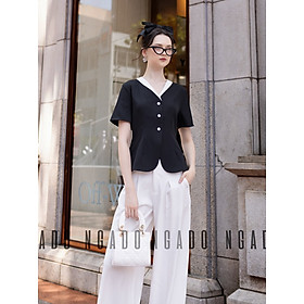 ✨Áo đen cổ viền trắng NGADO , Áo kiểu nữ , áo thiết kế