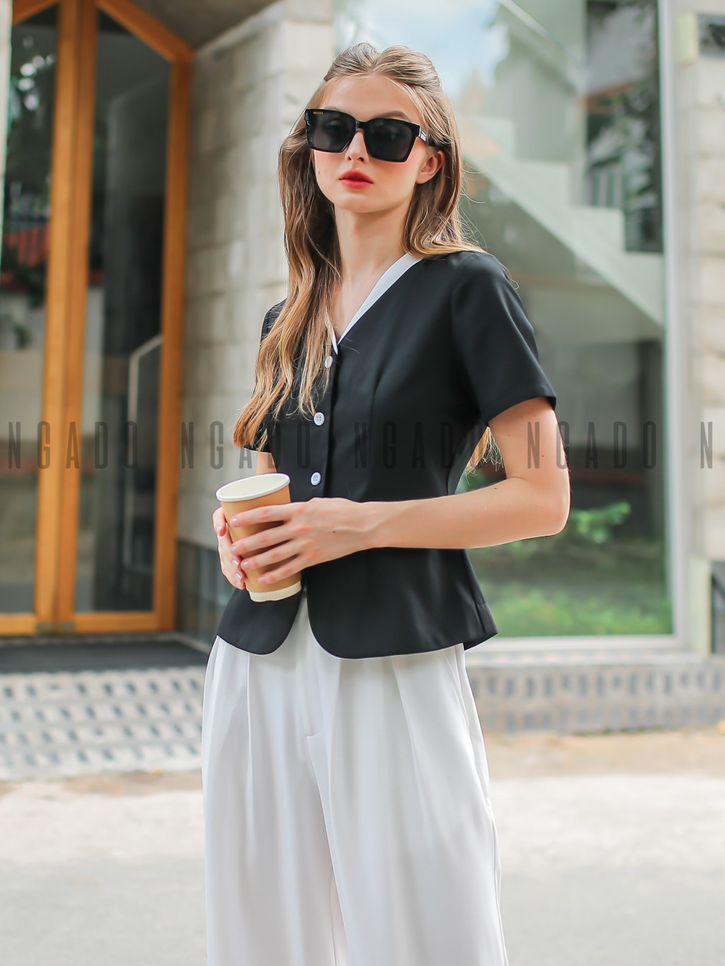 ღ THÔNG TIN SẢN PHẨM: Tên sản phẩm: Áo đen cổ viền trắng Màu sắc: đen Chất liệu: chất gân ý Chi tiết sản phẩm: không lót, không túi. Thông