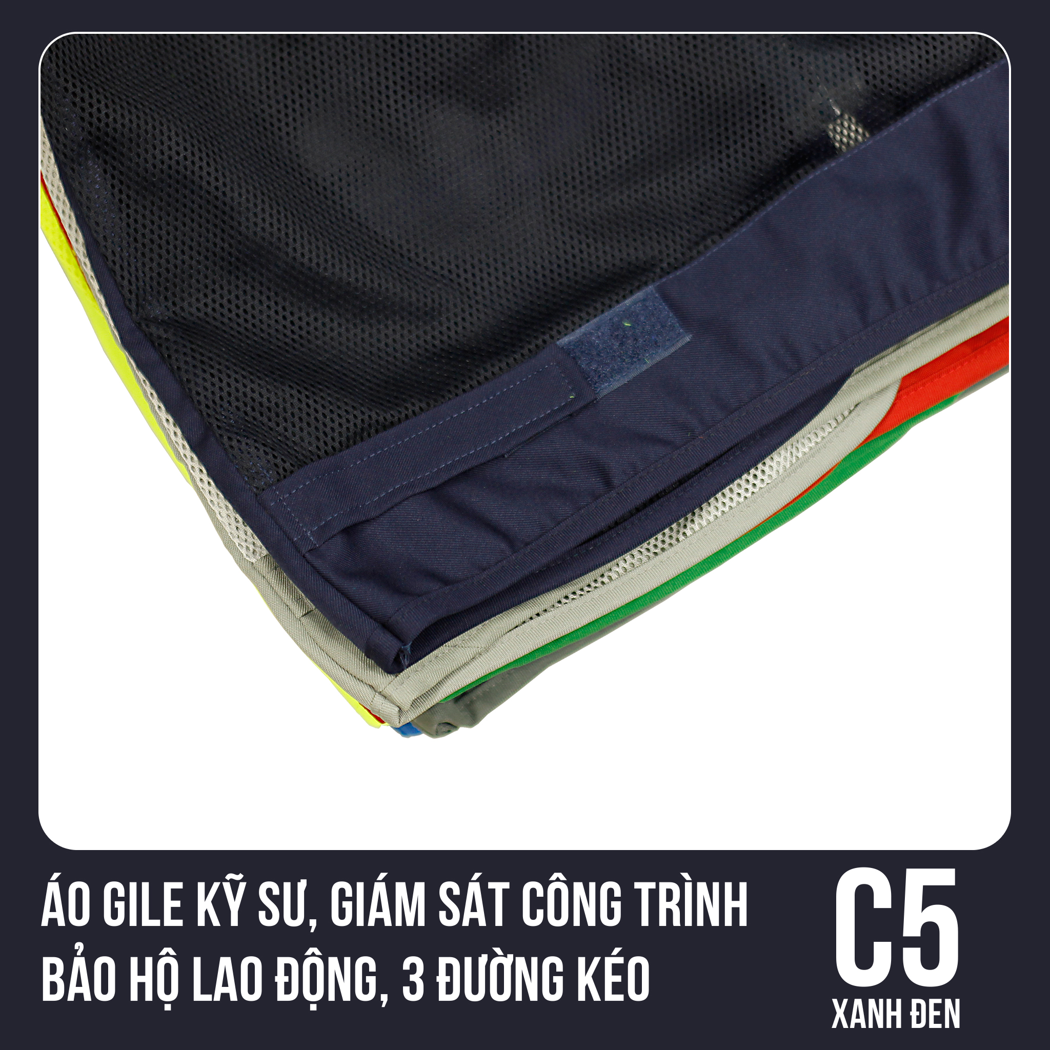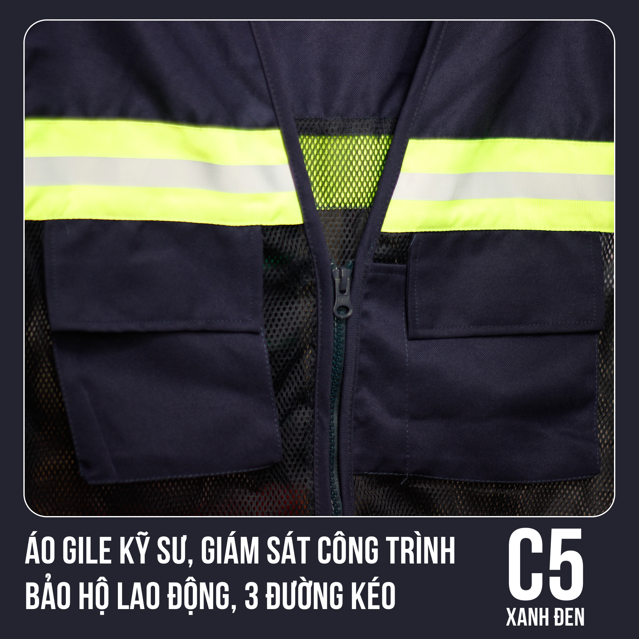 ✨Áo Gile Kỹ Sư, Giám Sát Công Trình, Bảo Hộ Lao Động, 3 Đường Kéo - Mã C5 (Xanh Đen)