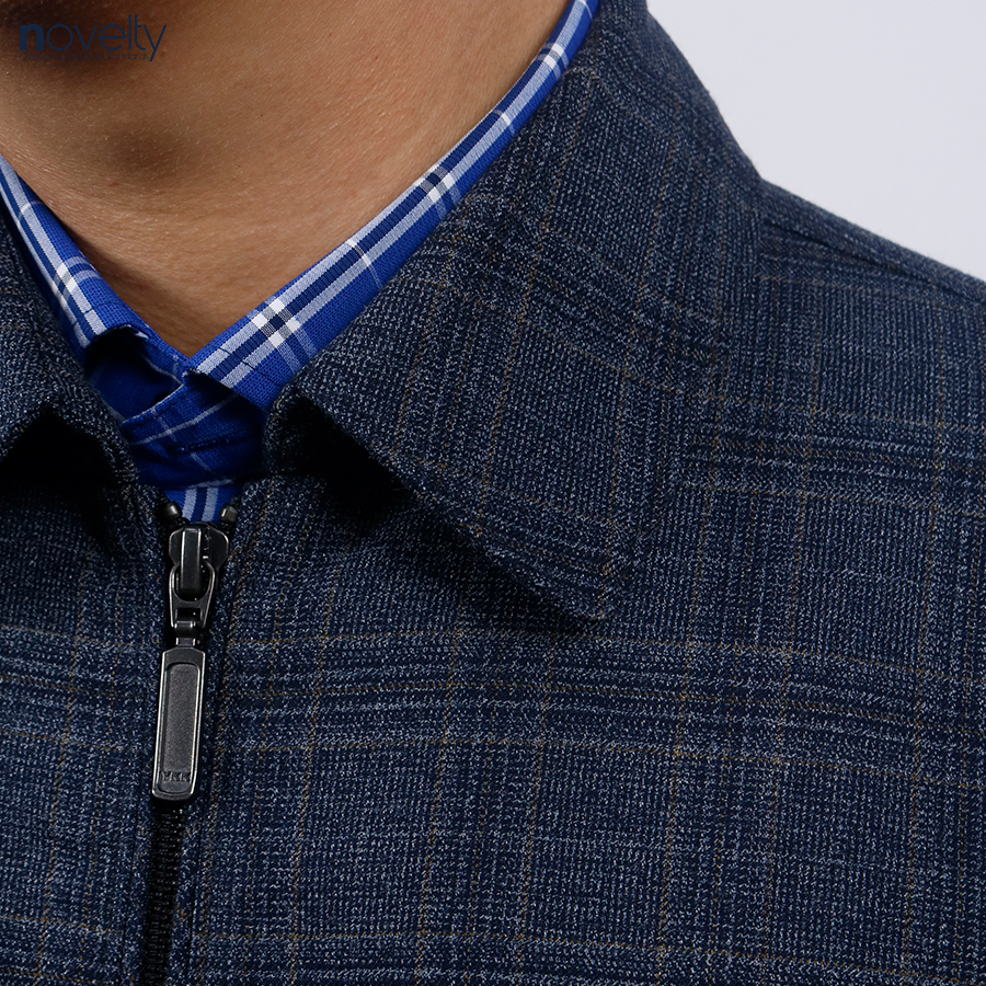 Áo Jacket nam 2 lớp cổ bẻ Novelty  Casual caro lớn xanh đen NJKMCLMT3B2305672