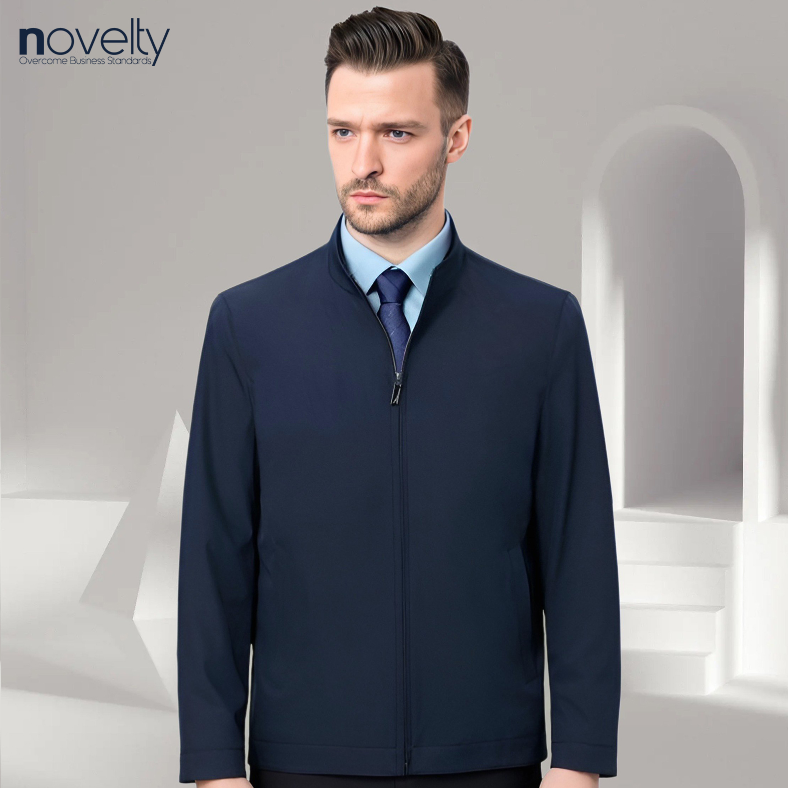 Áo Jacket Nam Boning Cổ trụ Novelty màu đen trơn