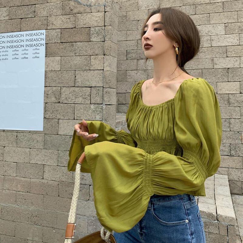 ✨Áo kiểu nữ cổ vuông chất lụa mát màu xanh lá