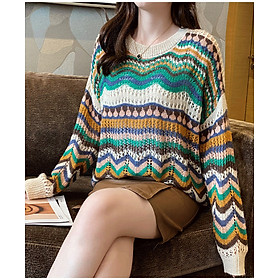 ✨Áo len nữ form rộng hoạ tiết phối màu xinh mẫu mới thu đông HB09