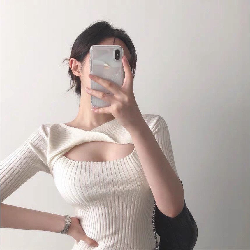 ✨Áo len tay lỡ xoắn ngực croptop phong cách tiểu thư sang chảnh
