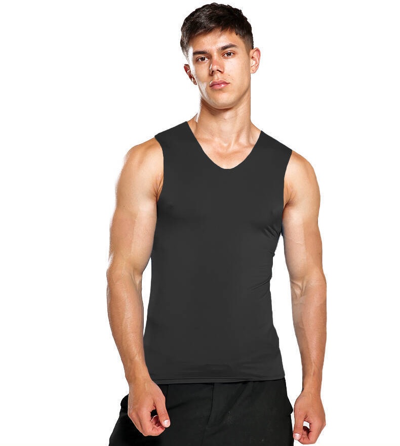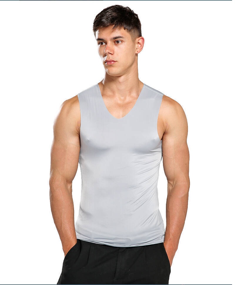 Áo lót nam áo ba lỗ body sát nách cổ chữ V vải lụa lạnh mát không đường may cao cấp Áo lót nam, áo ba lỗ Lụa lạnh cao cấp không đường may tập
