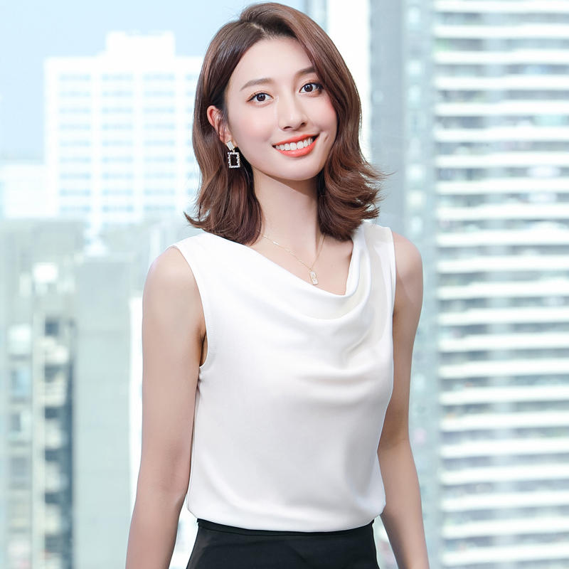Áo kiểu dáng suông Không tay Cổ cao viền bèo, ruy băng gân viền thắt nơ cổ Cài bằng nút phía sau Chất liệu chính: Polyester Ruy băng gân Polyester Cắt may thủ công tinh
