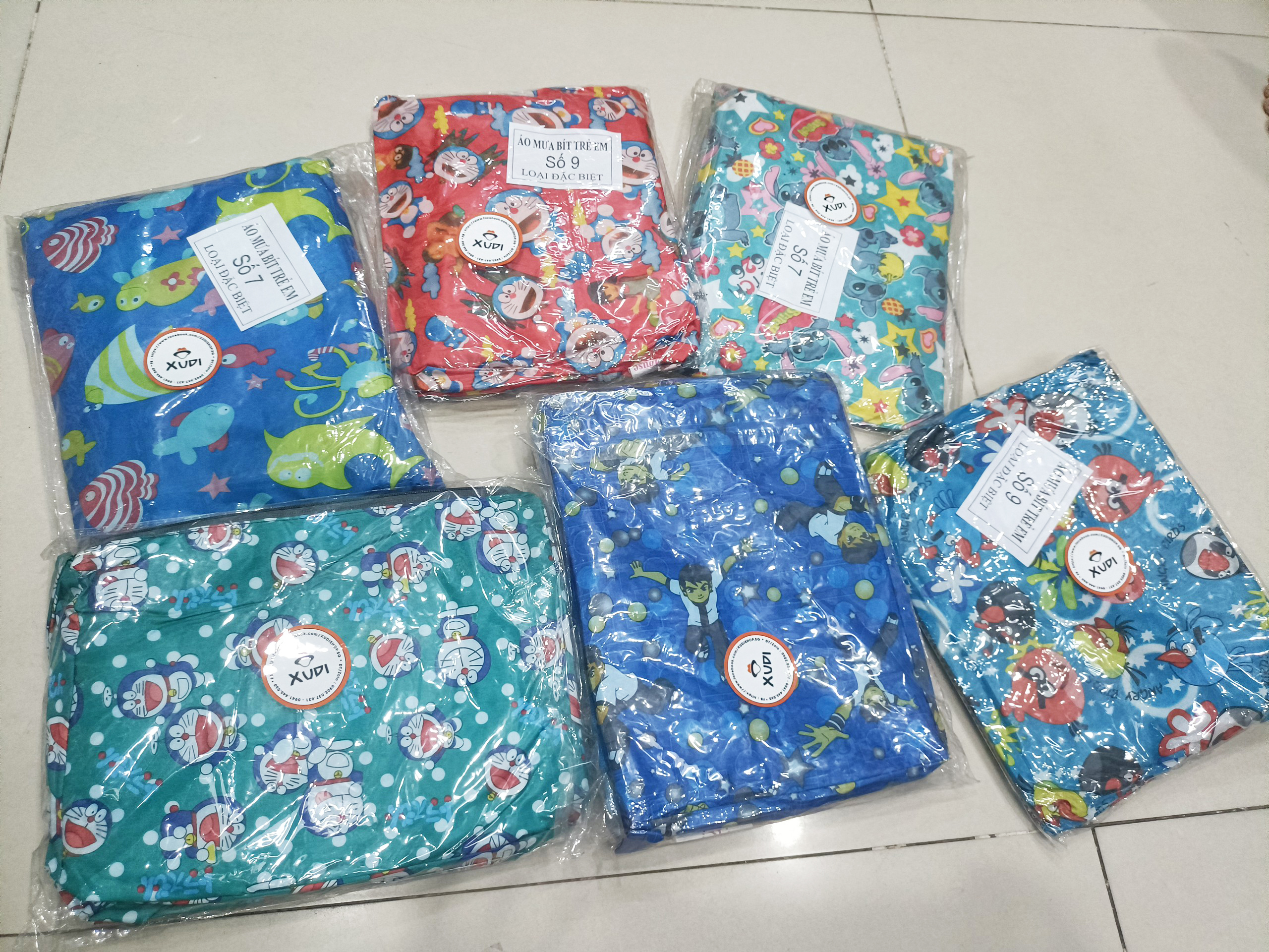 -Áo mưa bít , áo đi mưa cho bé từ 7 - 10 tuổi , vải dù , chống thấm nước , họa tiết hoạt hình nhiều màu , phù hợp cho các bé
