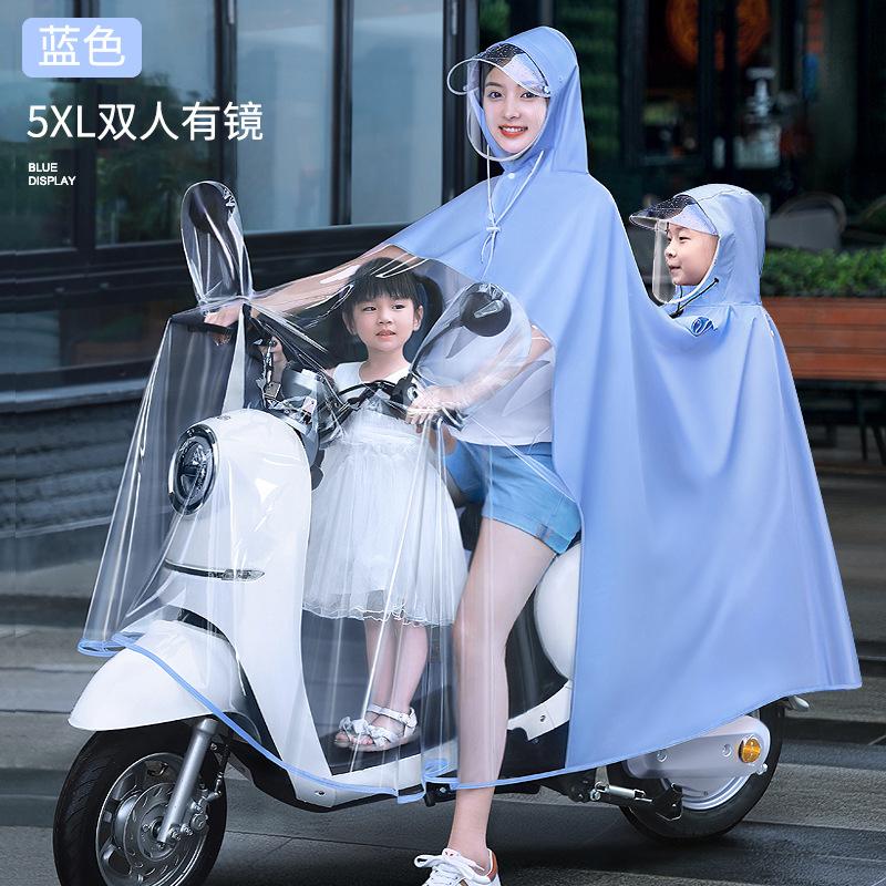 Áo mưa cho Mẹ và Bé nửa trước trong suốt kèm kính chắn mưa, che phủ toàn thân | Trùm đồ gia dụng