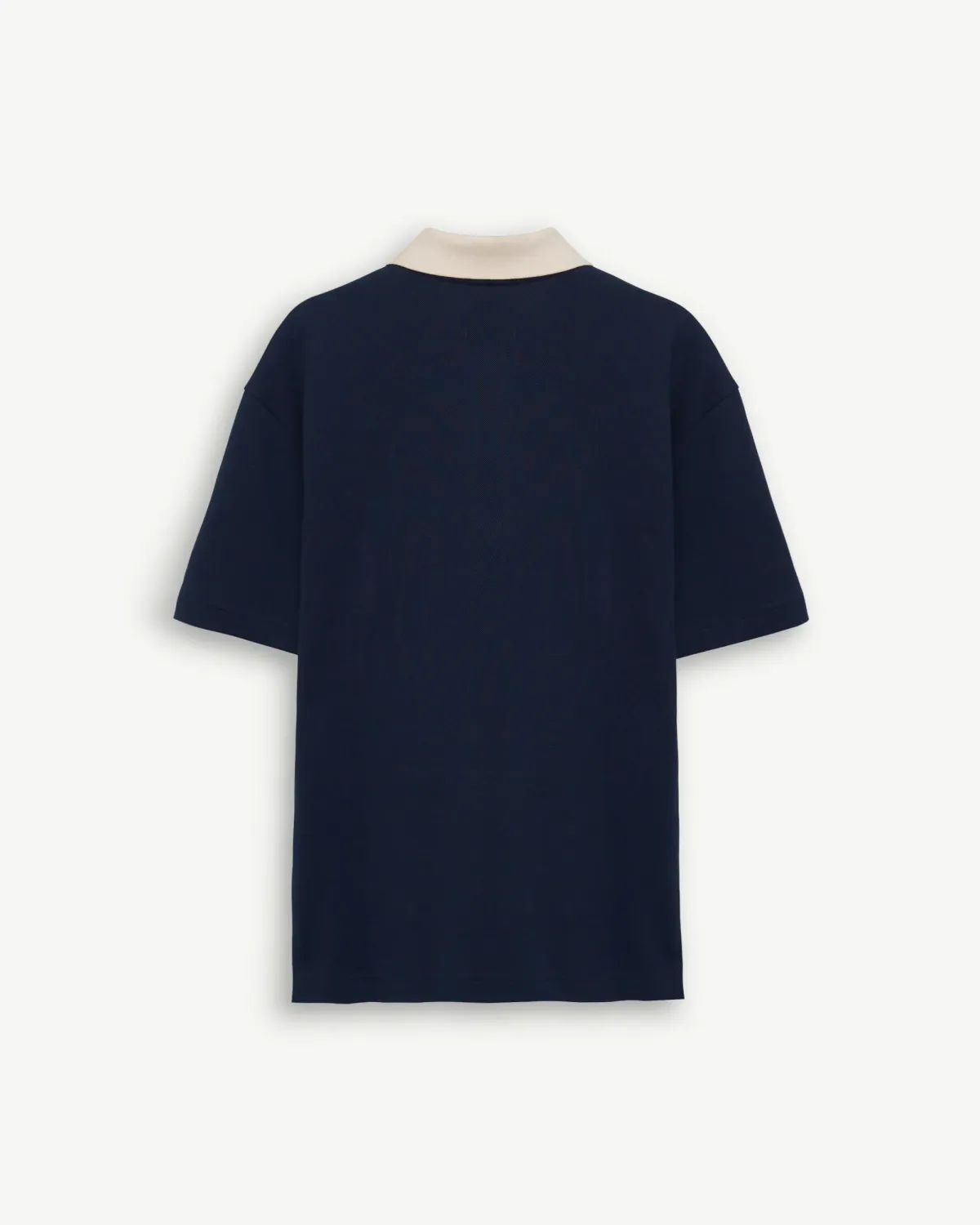 'Áo thun Novelty NATMMTMT3R181078N xanh coban cổ sơ mi sở hữu form Regular Fit thoải mái cho người mặc cùng kiểu dáng đơn giản, màu xanh navy, thêu họa tiết phần ngực tạo điểm nhấn