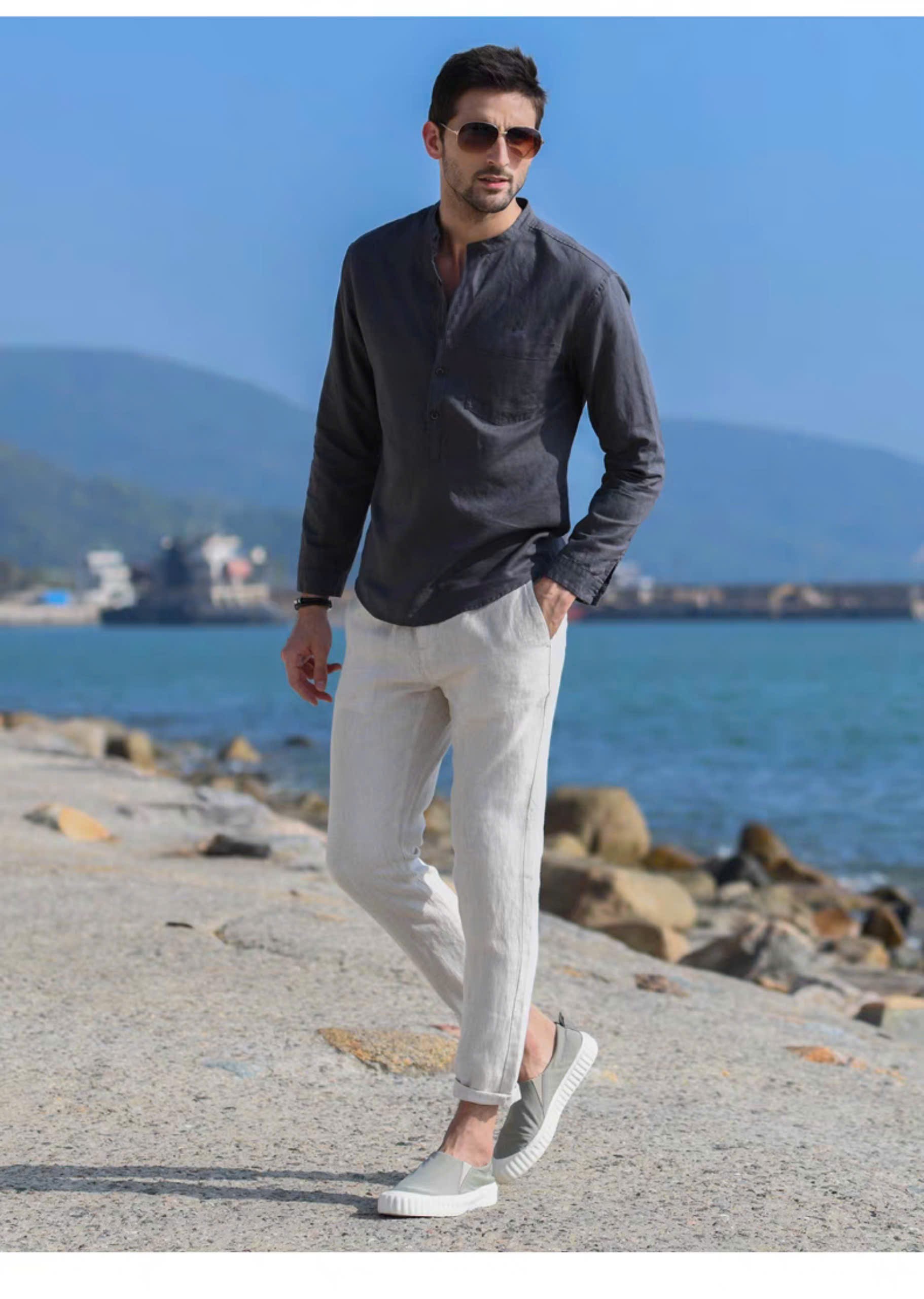 MÔ TẢ SẢN PHẨM 1. Tên sản phẩm: Áo Sơ Mi Nam Dáng áo: form suông Chất vải: Vải Linen thô cao cấp Họa Tiết: Trơn Hướng dẫn chọn size: SIZE M: < 60 Kg