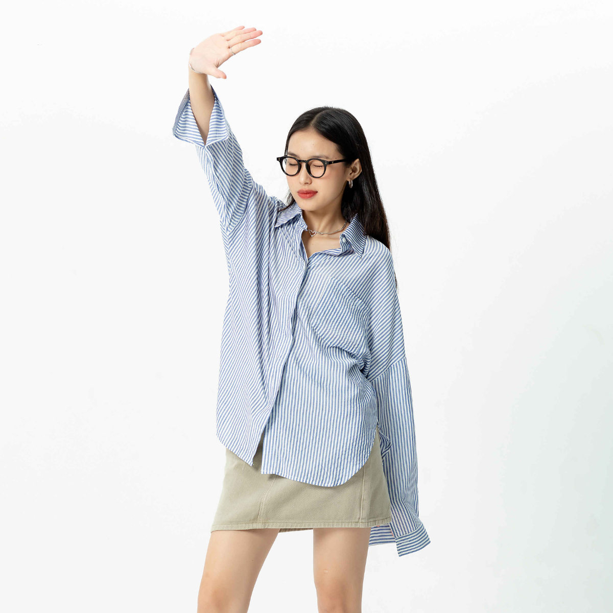 Áo Sơ Mi Sọc Hana Size S M L XL Phom dáng chuẩn đẹp, Chất liệu: VẢI dày dặn, dễ chịu, Là mẫu thiết kế có đường kim mũi chỉ sắc xảo, chị em công sở không